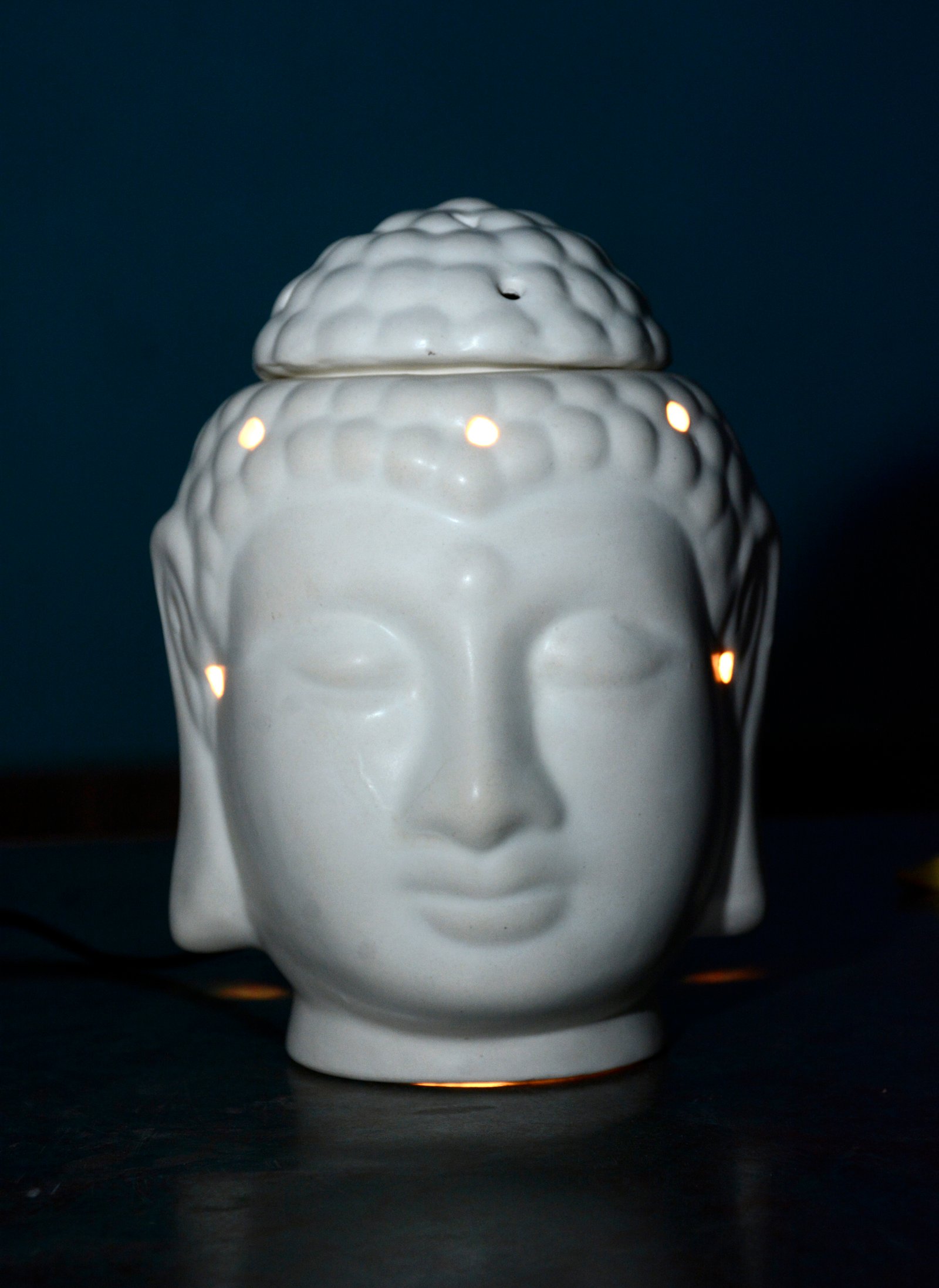 Serene Buddha Aroma Diffuser Create a calming ambiance: This beautiful aroma diffuser infuses your space with soothing scents, creating a relaxing and peaceful atmosphere. Relaxing and soothing: The soft, warm light emitted from the Buddha's head adds to the calming ambiance, perfect for meditation, yoga, or unwinding after a long day. Easy to use: Simply add your favorite essential oils to the water reservoir and turn on the diffuser. Safe and durable: The ceramic material is safe and durable, making it a long-lasting and reliable addition to your home. Versatile design: The Buddha head design is both elegant and discreet, making it suitable for any room in your home.