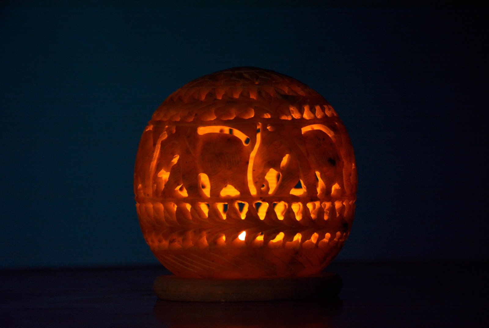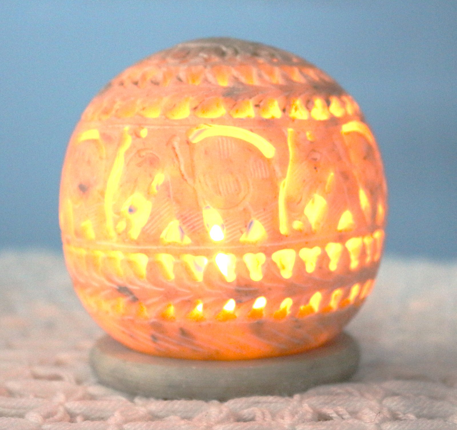 This exquisitely carved soapstone candle holder combines functionality with artistic elegance. Its unique egg shape and intricate carvings create a warm and inviting ambiance.
